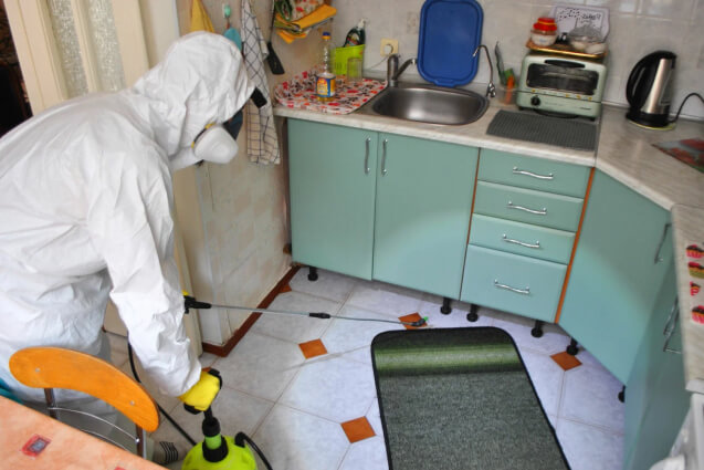 Далее требуется убрать из помещения все продукты питания, посуду и предметы личной гигиены. Если есть возможность, рекомендуется вынести мебель и бытовую технику, чтобы обеспечить доступ ко всем укромным уголкам. В случае если перемещение мебели невозможно, следует обеспечить свободный доступ к задним стенкам и другим труднодоступным зонам.
