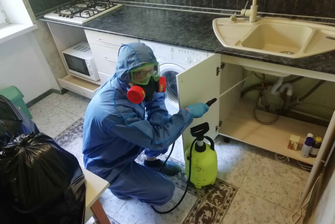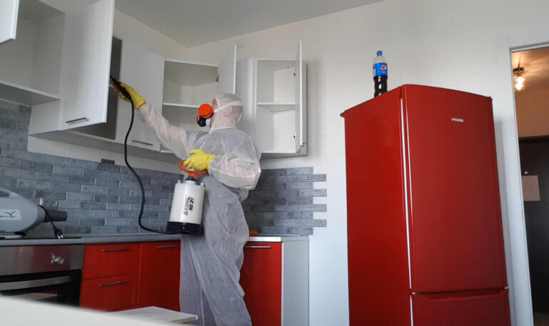 Специалисты осуществляют обработку специальными средствами, которые распространяются по всем уголкам помещения. Очень важно предоставить доступ ко всем поверхностям – профессионалы должны иметь возможность обработать каждый закуток.