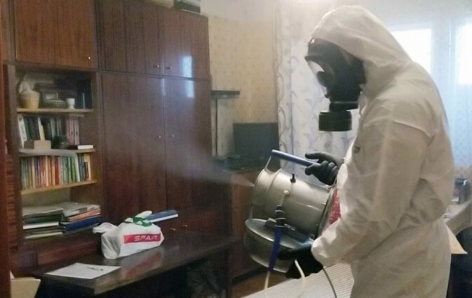 Обработка помещений должна проводиться строго по инструкции используемого препарата, при этом следует соблюдать личную защиту: носить перчатки, респиратор или защитную маску. Химический раствор следует равномерно распределить по поверхностям, особое внимание уделить труднодоступным местам. После обработки помещение должно быть закрыто на определенное время для достижения лучшего эффекта.